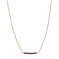 Az ALISIA ezüst női nyaklánc sárga aranyozással díszített, gazdag bordó árnyalatú gránáttal, amelyet a lánc közepén finom kövek sorakoznak.