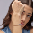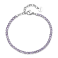 Női BROSWAY acél karkötő lila cirkóniákkal, szabályos teniszvonalban foglalva. A finom fémes csillogás a kövek lila árnyalatával kombinálva friss, elegáns hatást kelt, és modern, nőies jelleget kölcsönöz az ékszernek.