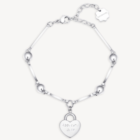 A karkötőt átlátszó kristályok díszítik, a szív hátulján pedig "Abbi cura di te " felirat található.