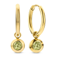 Női acél fülbevaló klasszikus karika kivitelben, sárga arannyal bevonva, olíva színű cirkóniával díszítve.