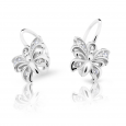 Gyermek fülbevaló fehér 14 karátos aranyból, aranyos pillangós kivitelben, átlátszó cirkóniákkal díszítve.