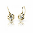 Gyermek fülbevaló sárga 14 karátos aranyból, aranyos szívecskés kivitelben, átlátszó cirkóniával díszítve.