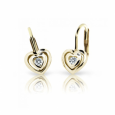 Gyermek fülbevaló sárga 14 karátos aranyból, aranyos szívecskés kivitelben, átlátszó cirkóniával díszítve.