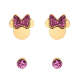 A DISNEY Minnie Egér gyermek acél fülbevaló szett aranyozott dizájnnal egy imádnivaló kiegészítő a mesés részleteket kedvelő kislányoknak. A szett két pár bedugós fülbevalót tartalmaz - az egyik Minnie formájában, az ikonikus masnival, a másik pedig finom lila-rózsaszín cirkóniákkal díszített, így több lehetőséget kínál a mindennapi viseletre.