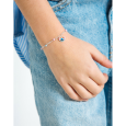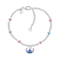 DISNEY ezüst gyerek karkötő Stitch motívummal, kék és rózsaszín zománccal, valamint gyöngyökkel díszítve.