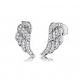 Női ezüst fülbevaló angyalszárnyak formájában, átlátszó cirkóniákkal díszítve.