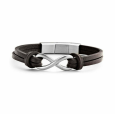 Férfi bőr karkötő acél csattal és végtelenség szimbólummal.