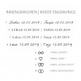 A gyűrűkhöz lehetőség van a gyűrű árában szereplő gravírozás kiválasztására. Megrendeléskor a megjegyzésben tüntesse fel a betűtípust, karaktert és szöveget. A betűtípusokat a gyűrűk képgalériájában láthatjátok.