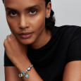 Az ezüst DISNEY X PANDORA gyöngy a Disney Stitch-et ábrázolja húsvéti nyuszit, és fekete, valamint középzöld árnyalatú mázzal díszített. A motívumot narancssárga sárgarépa (kvarc utánzat), valamint jellegzetes szőr- és mancsrészletek egészítik ki.