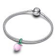 Ez az ezüst PANDORA gyöngy rózsaszín Murano üvegből készült, alma alakú, és átlátszó cirkónium díszíti. A mintát fűzöld, élénk orchidea és rózsaszín máz emeli ki a száron, a levélen és a szemen, míg a szárat cirkónium díszítés díszíti.