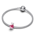 Ez a sterling ezüst PANDORA gyöngy csiga motívummal, sterling ezüstből készült fejjel és testtel, élénk orchidea, rózsaszín és átlátszó mázas részletekkel díszítve. A dizájnt halványrózsaszín cirkóniák, a héj közepén egy átlátszó cirkónia és a csápokon található cirkónia részletek teszik teljessé.