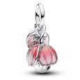 Ez a sterling ezüst PANDORA függőgyöngy virágzó virágmotívumot ábrázol, három réteg szirommal, melyeket csillogó rózsaszín gyantával töltöttek ki. A dizájnt aranyozott középpont és egy zöld kristály teszi teljessé a szárban és a végén, minden szirom felpattanva felfedi a következő réteget, és a „Köszönöm” feliratot viseli rajta.