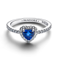 Ez a PANDORA ezüstgyűrű királykék szív alakú kristállyal rendelkezik, amelyet átlátszó cirkónia szegély vesz körül. A gyűrű tetejét átlátszó cirkóniák díszítik, hozzájárulva az összhatás csillogásához.