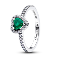 Ez a PANDORA ezüst gyűrű egy királyzöld szív alakú kristállyal rendelkezik, amelyet átlátszó cirkóniák vesznek körül. A gyűrű tetejét átlátszó cirkóniák egészítik ki, amelyek fokozzák az összhatást.