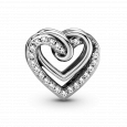 PANDORA összefonódó szívek charm, átlátszó cirkóniákkal díszítve. Finom, kifinomult szív, kisebb összefonódó szívekkel, amelyek két ember szerelmét jelképezik.