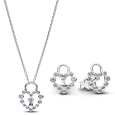 PANDORA ezüst nyaklánc és fülbevaló szett Szív alakú zárral: 394416C01 és 294419C01.