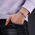 A sebészeti acélból készült POLICE férfi karkötő az ezüstszürke árnyalatú acélkábel és a jellegzetes, faragott POLICE logóval ellátott központi elem kombinációjával tűnik ki.