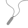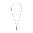 A POLICE férfi acél nyakláncot egy szürke árnyalatú lánc és egy hosszúkás medál egészíti ki, matt felülettel és finom gravírozott mintával.