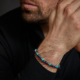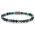 Férfi REBEL & ROSE karkötő riolit, szodalit, hematit és türkiz gyöngyökből, rugalmas kivitelben.