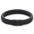 REBEL & ROSE fekete férfi bőr karkötő a márka logójával díszített acél csattal.