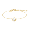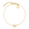 A ROSEFIELD acél karkötő Swarovski gyönggyel finom, elegáns és nagyon nőies megjelenésű. A domináns elem a központi gyöngy, amelyet egy átlátszó Swarovski kristályokkal kirakott ív egészít ki, amely finoman csillogó hatást kölcsönöz az ékszernek. A minimalista dizájn ideális kiegészítővé teszi a mindennapi viselethez és a különleges pillanatokhoz.