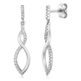 Női ezüst lógós csavart fülbevaló átlátszó cirkóniákkal díszítve.