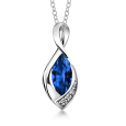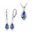 Ezüst foglalat kék és átlátszó cirkóniákkal.