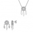 Ezüst szett, amely egy nyakláncból és egy álomfogó formájú fülbevalóból áll.