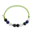 Kézzel kötött karkötő, kiváló minőségű féldrágakövekből, finom ezüst részletekkel díszítve.