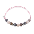 Kézzel kötött karkötő, kiváló minőségű féldrágakövekből, finom ezüst részletekkel díszítve.