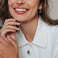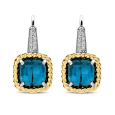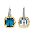 A fülbevaló foglalatát finom pavé cirkónium díszíti, amely finom csillogást kölcsönöz, és harmonikus kontrasztot teremt a feltűnő kék tónus és a meleg arany árnyalat között. A fülbevaló elegáns és nemes megjelenésű - mindennapi viseletre és különleges alkalmakra egyaránt alkalmas.