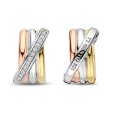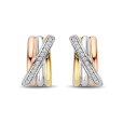 Női ezüst fülbevaló TI SENTO, 14 karátos sárga és rozé arannyal és átlátszó ródiummal bevonva, átlós sávval, átlátszó cirkóniákkal kirakva.