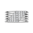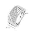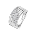 A TI SENTO cirkóniumokkal díszített ezüstgyűrű egy feltűnő ékszer, amely réteges mintázatával és ragyogó fényével rabul ejti a tekintetet. A több vonal modern, plasztikus hatást kelt, amely egyszerre elegáns és merész.