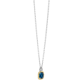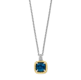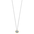 A TI SENTO sárga arannyal bevont medállal ellátott női ezüst nyakláncot egy elegáns, sima keretbe foglalt feltűnő kék kristály díszíti. A kő mélykék árnyalata mély tükröződéseket kelt és luxushatású, míg a meleg arany árnyalattal való kontraszt modern és nőies jelleget kölcsönöz a darabnak.