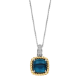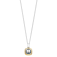 A TI SENTO sárga arannyal bevont medállal ellátott női ezüst nyakláncot egy elegáns, sima keretbe foglalt feltűnő kék kristály díszíti. A kő mélykék árnyalata mély tükröződéseket kelt és luxushatású, míg a meleg arany árnyalattal való kontraszt modern és nőies jelleget kölcsönöz a darabnak.