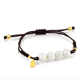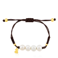 Női sötétbarna TOUS zsinóros karkötő édesvízi gyöngyökkel és egy kis mackóval. Az ezüst részek 18 karátos sárga arannyal vannak aranyozva.